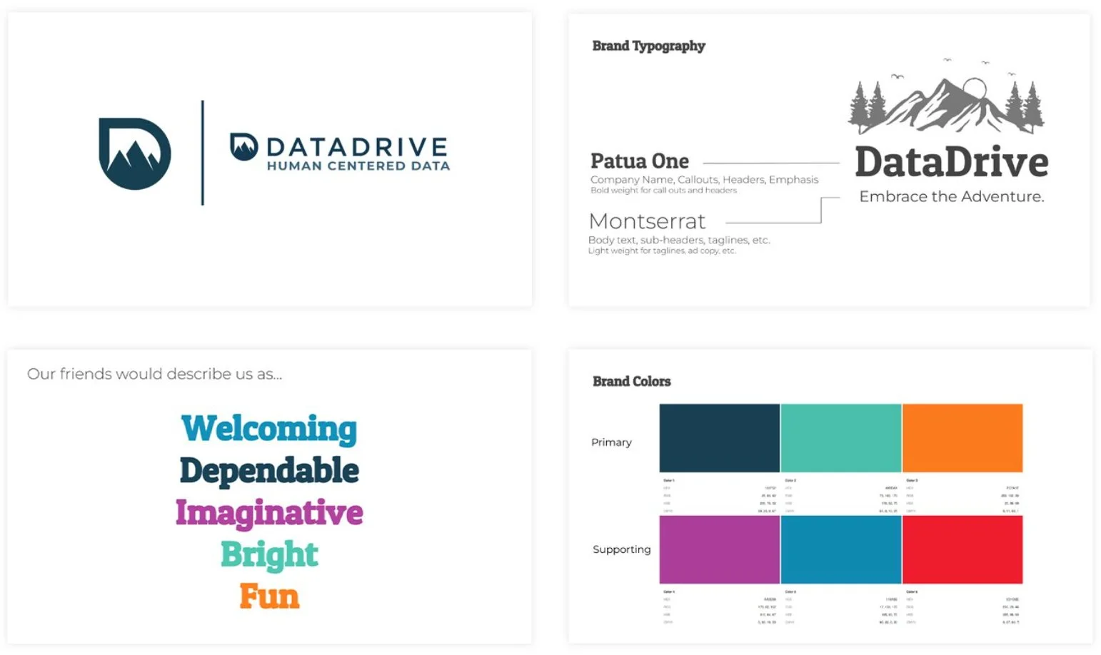 DataDrive is a data analytics consultancy founded with adventure in mind, and the founder was excited to developed a brand that reflected both data and adventure. This made developing DataDrive’s brand a unique challenge, as the adventure theme had to work for highly technical and data-focused content.